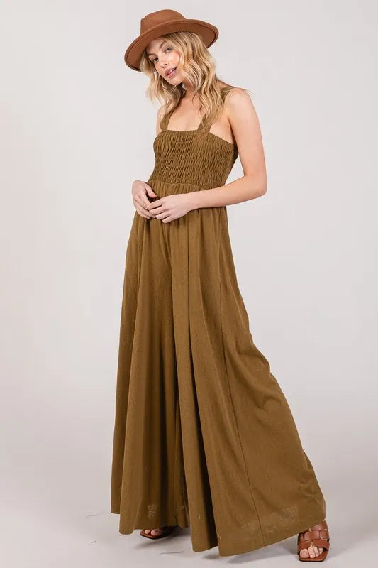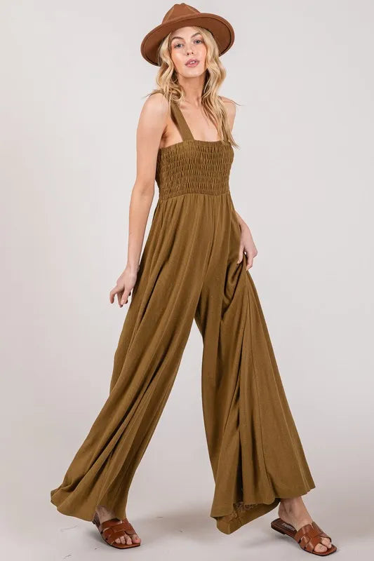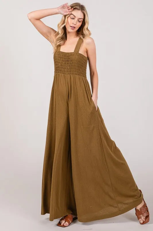 SAGE+FIG Smocked Flowy Wide Leg Jumpsuit